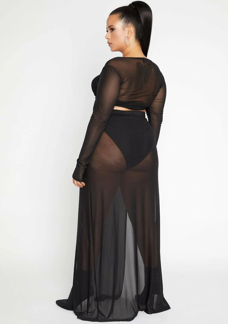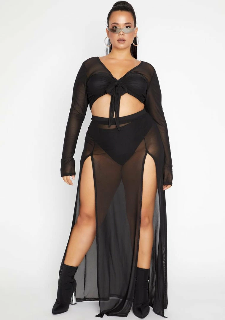 cuz itâs my kingdom and I rule it, bish. Try to top me in this hot as hell crop top Nâ maxi skirt set that has a sheer mesh construction, sexXxy high leg slits, a flirty front tie closure and comes with matching panties.