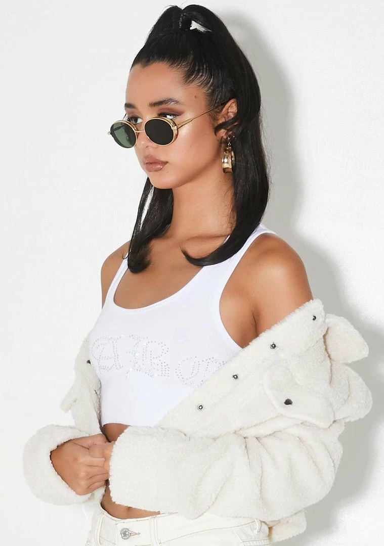 give âem the recipe to ya hot grl ways, bae. Look hotter than the rest in this hottie offish tank crop top that has a scoop neckline, blindinâ rhinestone âBABEâ script Nâ raw hemline.