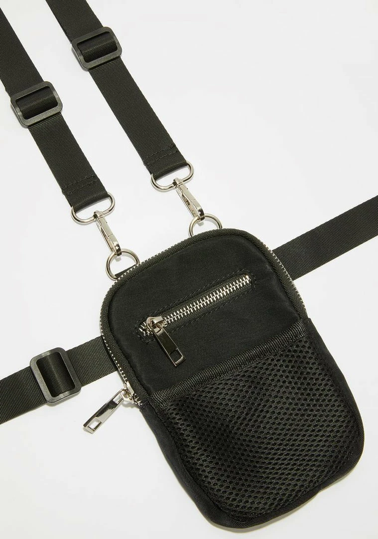 because you know how to bring it. This harness bag set buckles around the chest and right thigh and comes with three detachable utility zipper pouches.