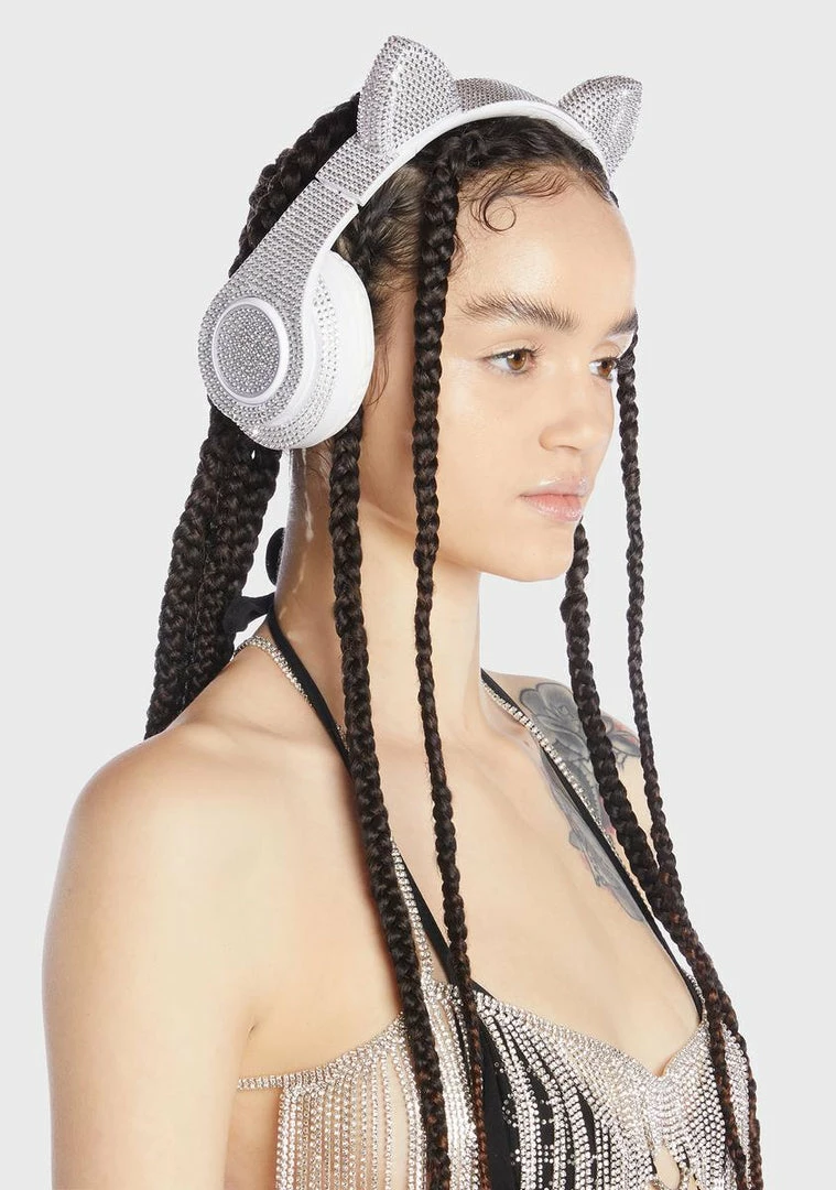 cuz you’re not fully dressed till you sparkle! These headphones have eye-catching rhinestones all over and cat ears at top.