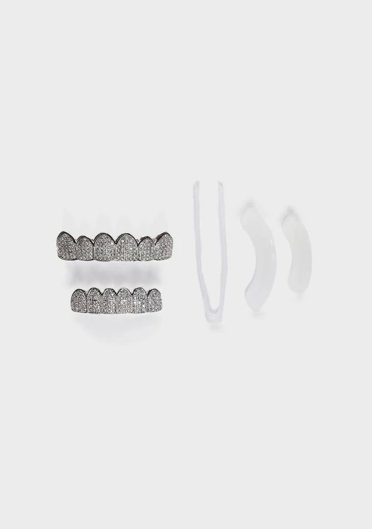 got you flyin’ private. These teeth grills are covered in sparkly head-turning rhinestones.