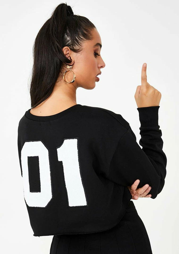 got ya team on their A-game, bae. Run the pack in this dope AF sweatshirt that has bad bish fuzzy embroidered text graphics on the front, a crew neckline Nâ cropped fit.