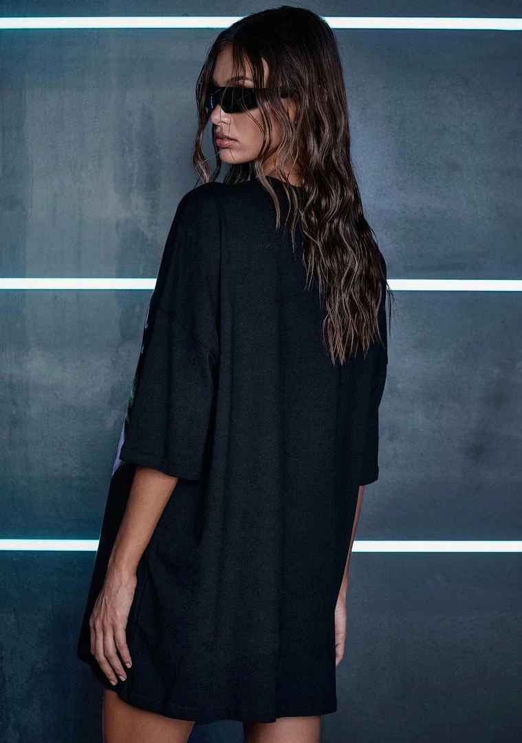 guaranteed you’re gonna freak. Rewire your head in this cotton tee that has an oversized fit, a crew neckline, short sleeves, and a funky neon graphic print across the front.