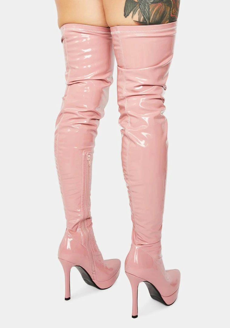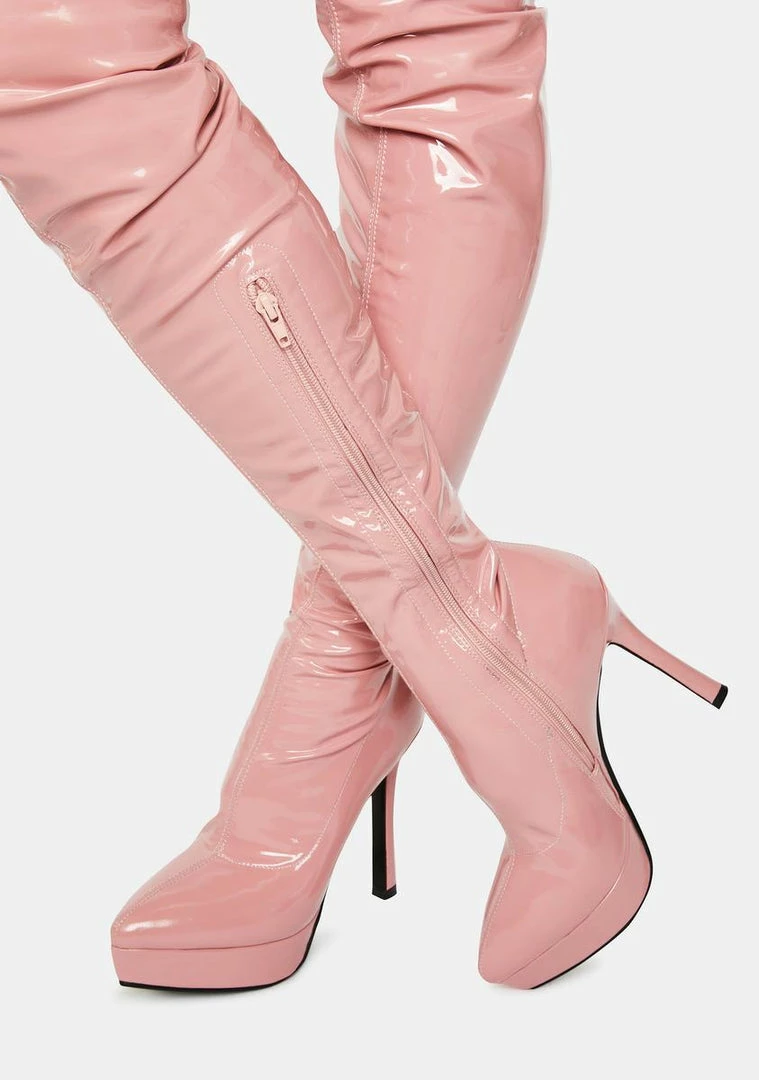 cuz you always cash the checks. These boots are patent leather and thigh high.