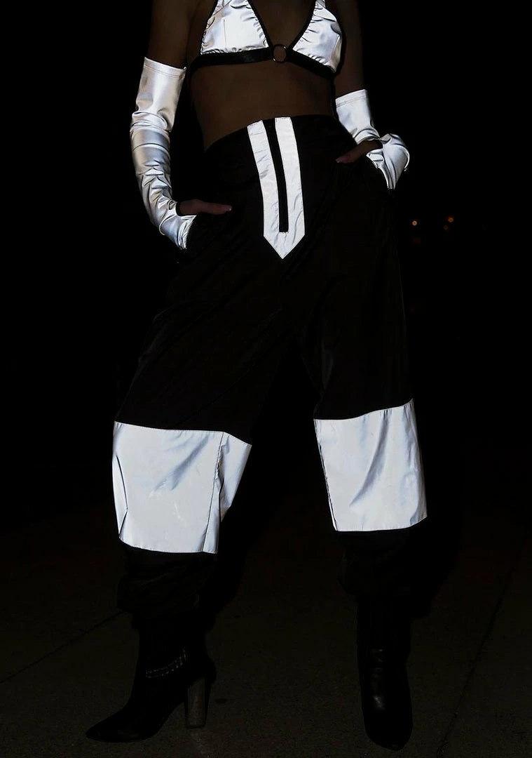 cuz youâre the star. These black pants have a front zipper closure, a loose Nâ comfy fit, and reflective panels on the legs so youâll always be seen.