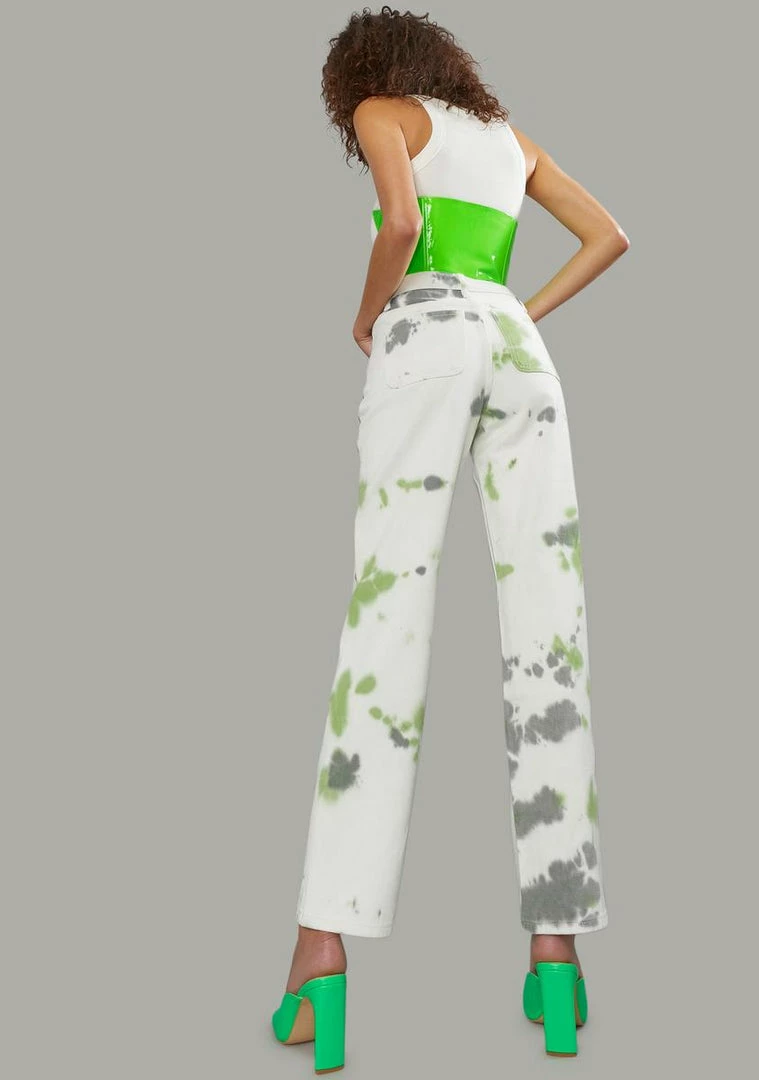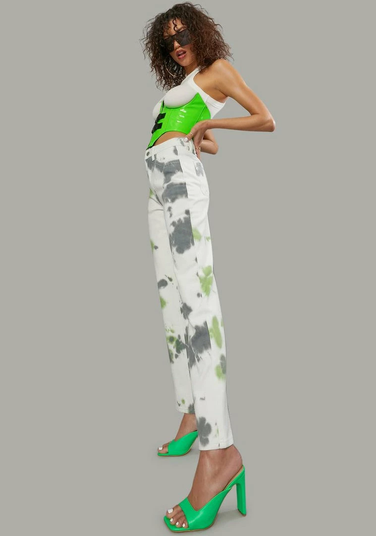 cuz you add a pop of color to your life. These jeans are high waisted with a tie dye print.