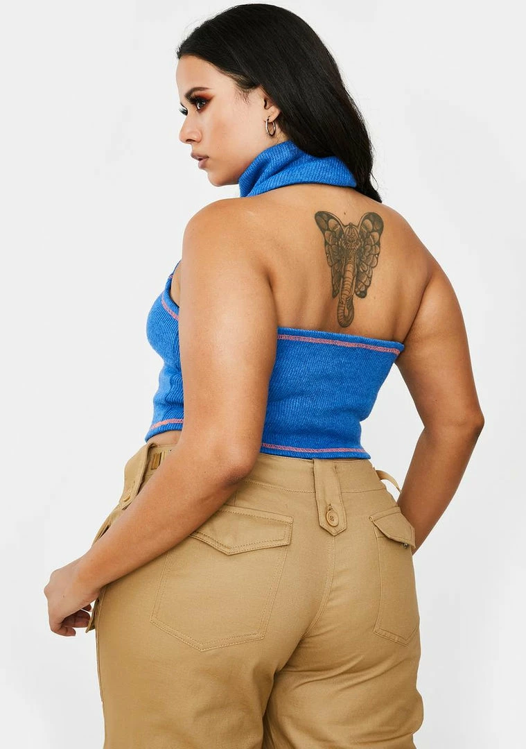 they act like they know people but you got the numbers to prove it, sis. Youâre worth the follow in this hot AF halter tank top that has a stretchy ribbed knit, contrast stitching, a thicc turtleneck and cropped fit.