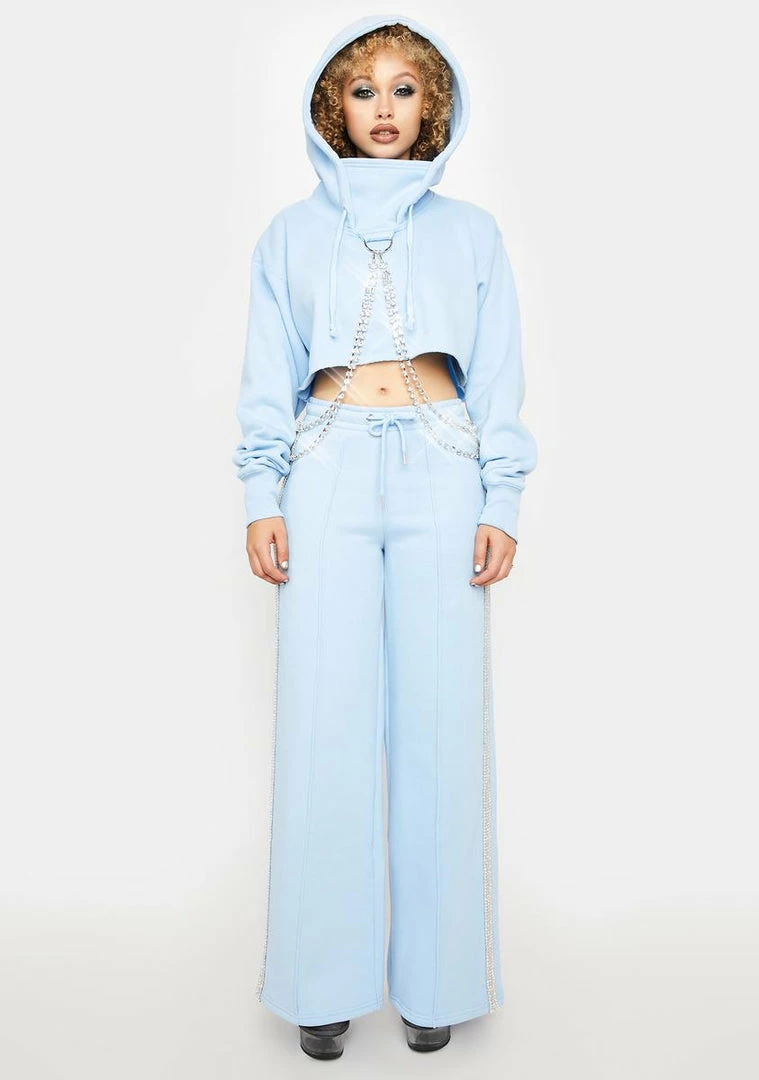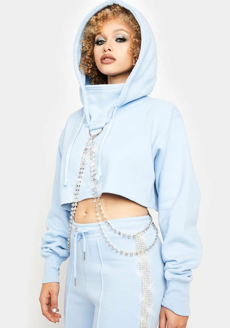 cuz you don’t address anything below your pay grade. Slay the game in this cropped hoodie that has removable blindin’ rhinestone chainz and thumbholes with a sick cowl neck.