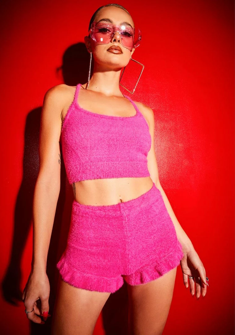 cuz you are totally over it. This furry cropped top comes with matching shorts.
