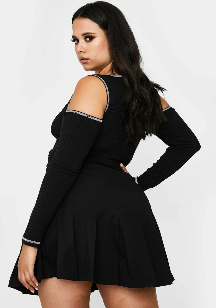 they act like they know people but you got the numbers to prove it, sis. Youâre worth the follow in this long sleeve crop top that has exposed contrast stitching, cold shoulder cut-outs and a baddie alert lace-up closure.