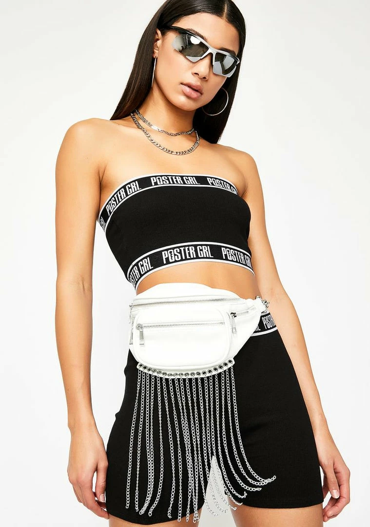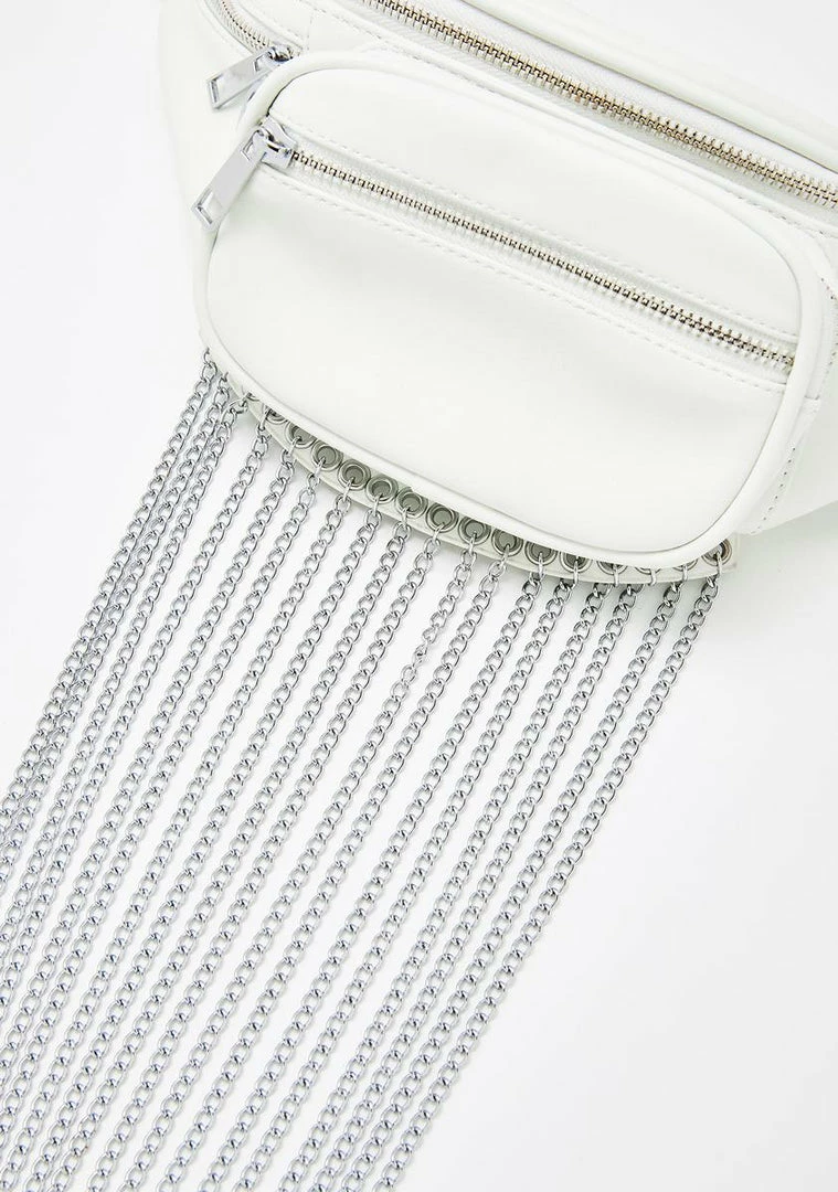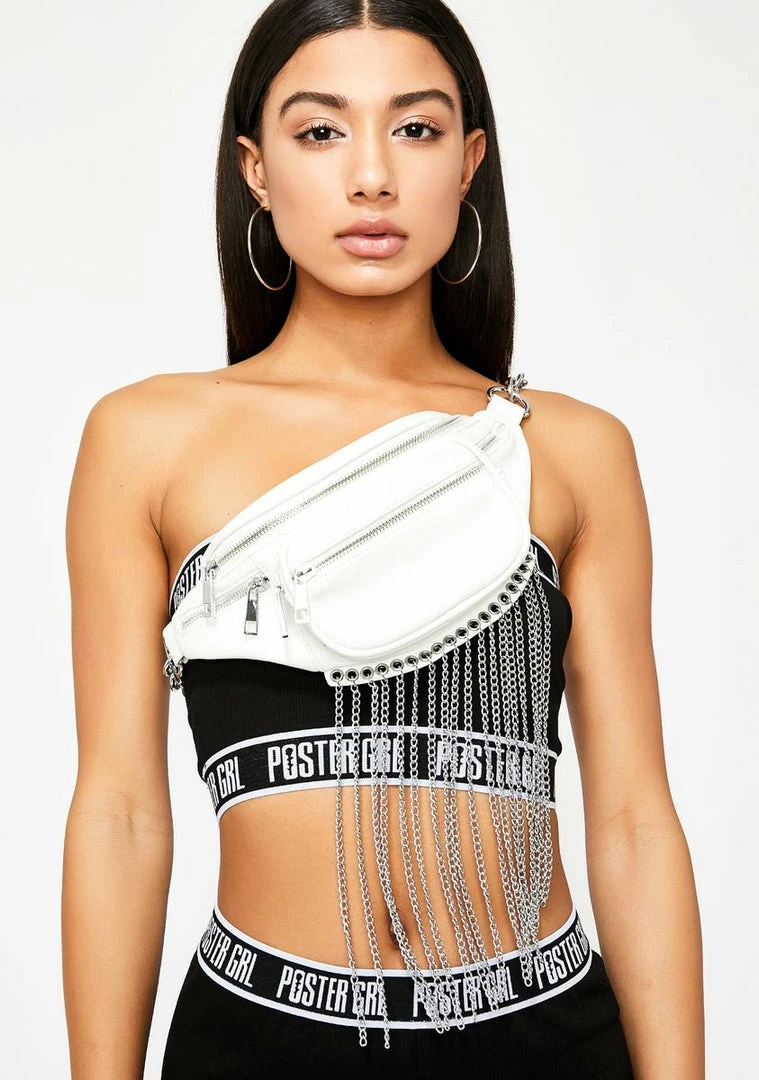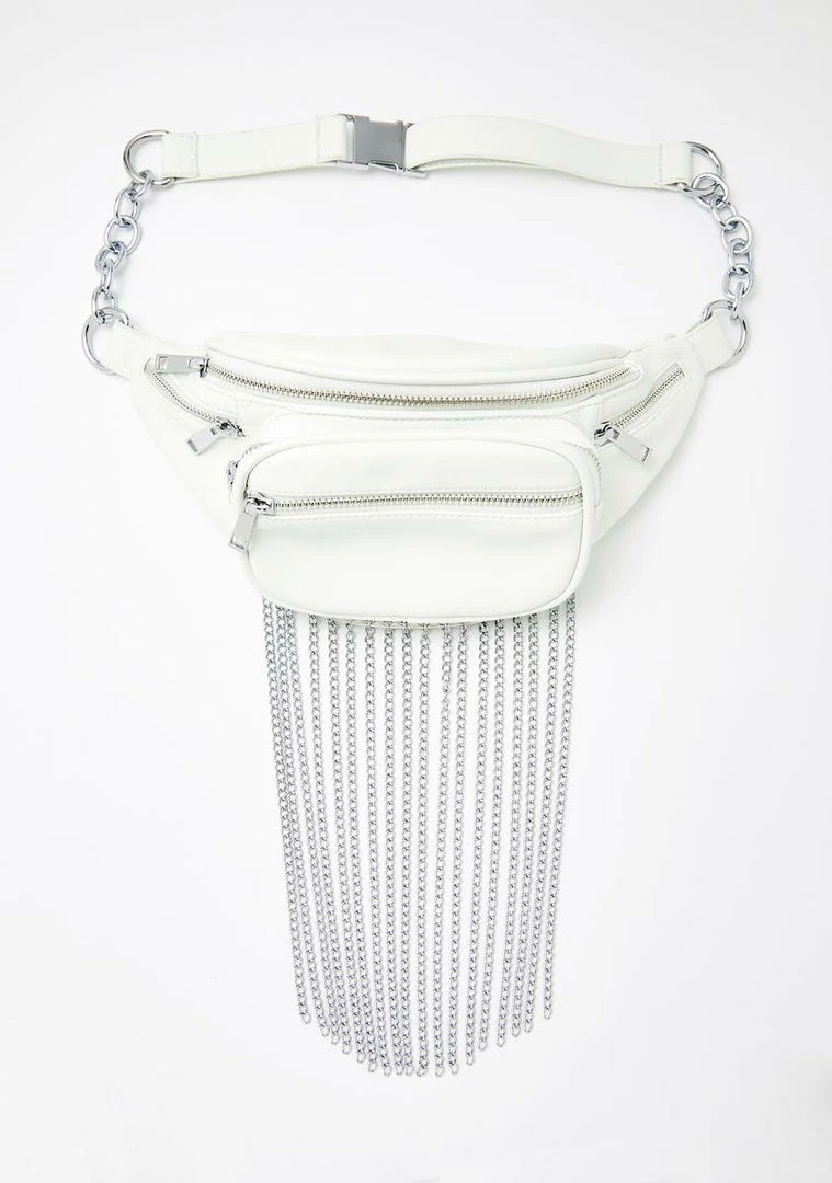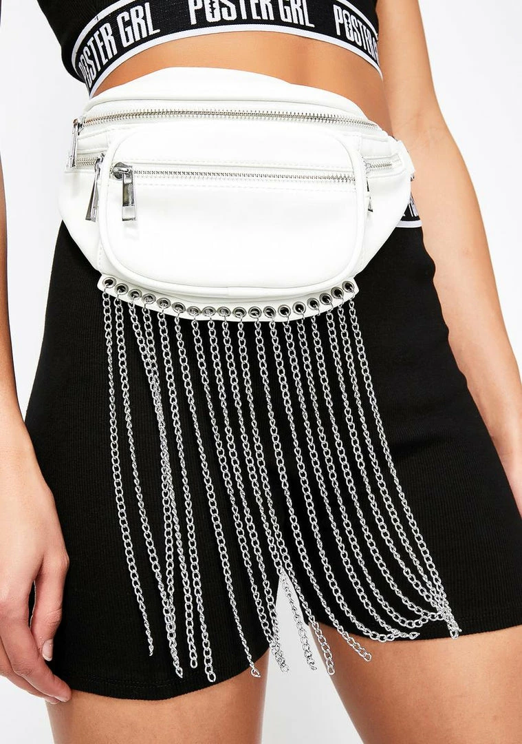 cuz ya licensed to slay huntyyy. Youâre the word on the street with this drippinâ fanny pack that has clout chasinâ chain fringe and front zip Nâ buckle strap closures.