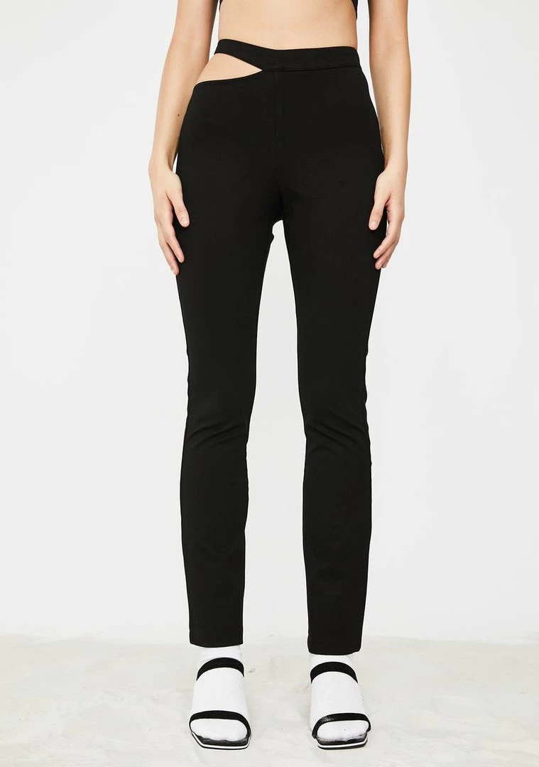 cuz what goes around comes around, babe. Get by with a lil help from ya friends in these supa cute slim pants that have a hott cut-out at the hip and a stretchy high waist fit.