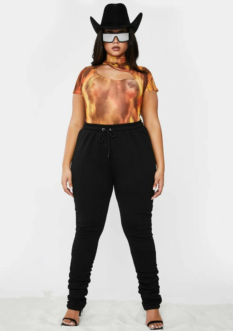 donât get mad, get a bag! The glow up is real in this short sleeve crop top that has a mock neckline, supa sheer tie dye print mesh material Nâ a sexXxy âblessed never stressedâ front cut out.