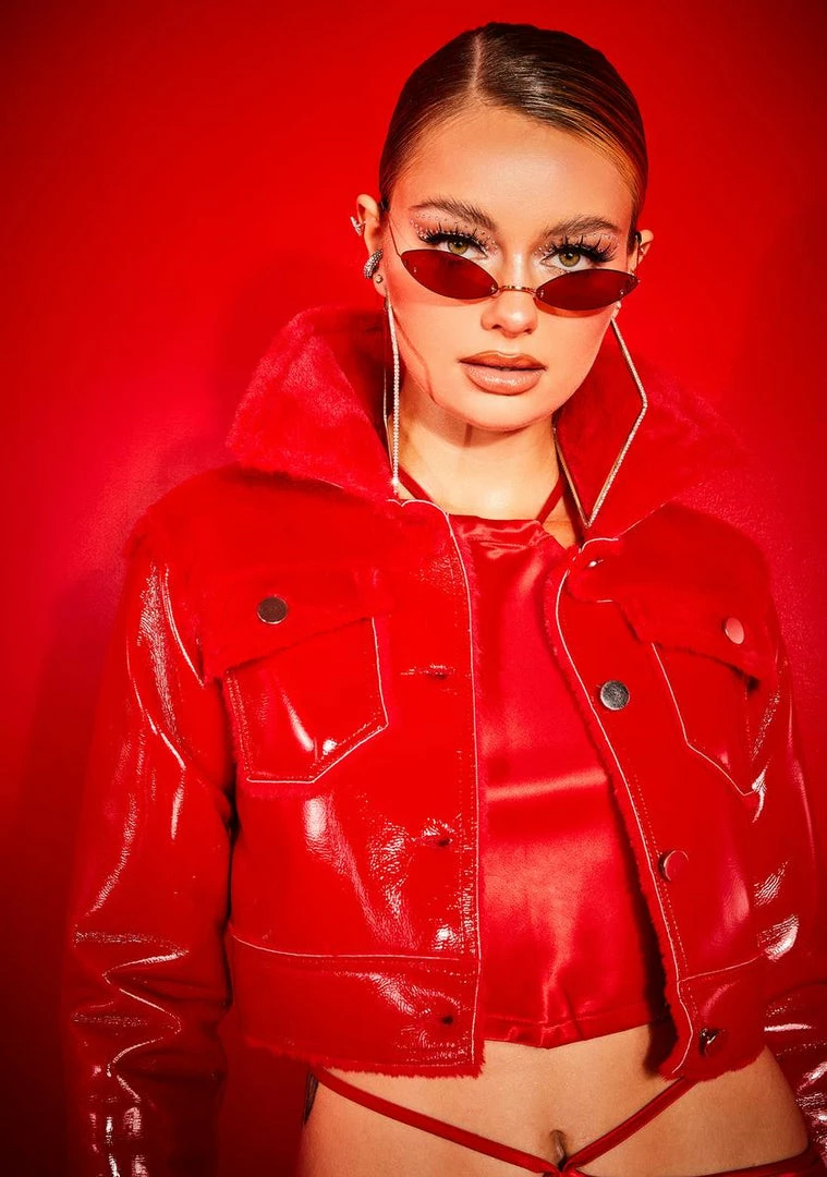 Be the first to review “Poster Grl Gone Bad Cropped Patent Trucker Jacket” Cancel reply