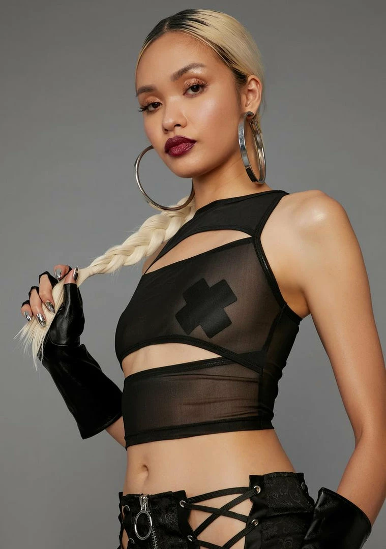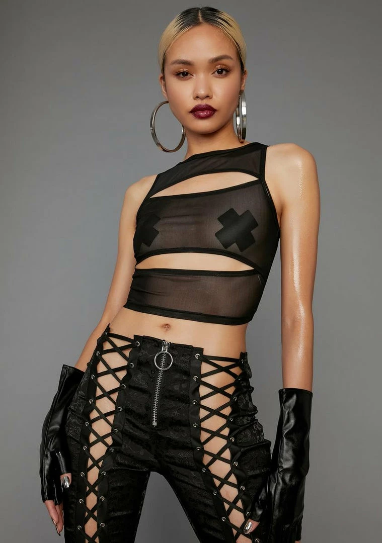cuz sometimes you canât keep a secret. This cropped tank is mesh with double cutout design.