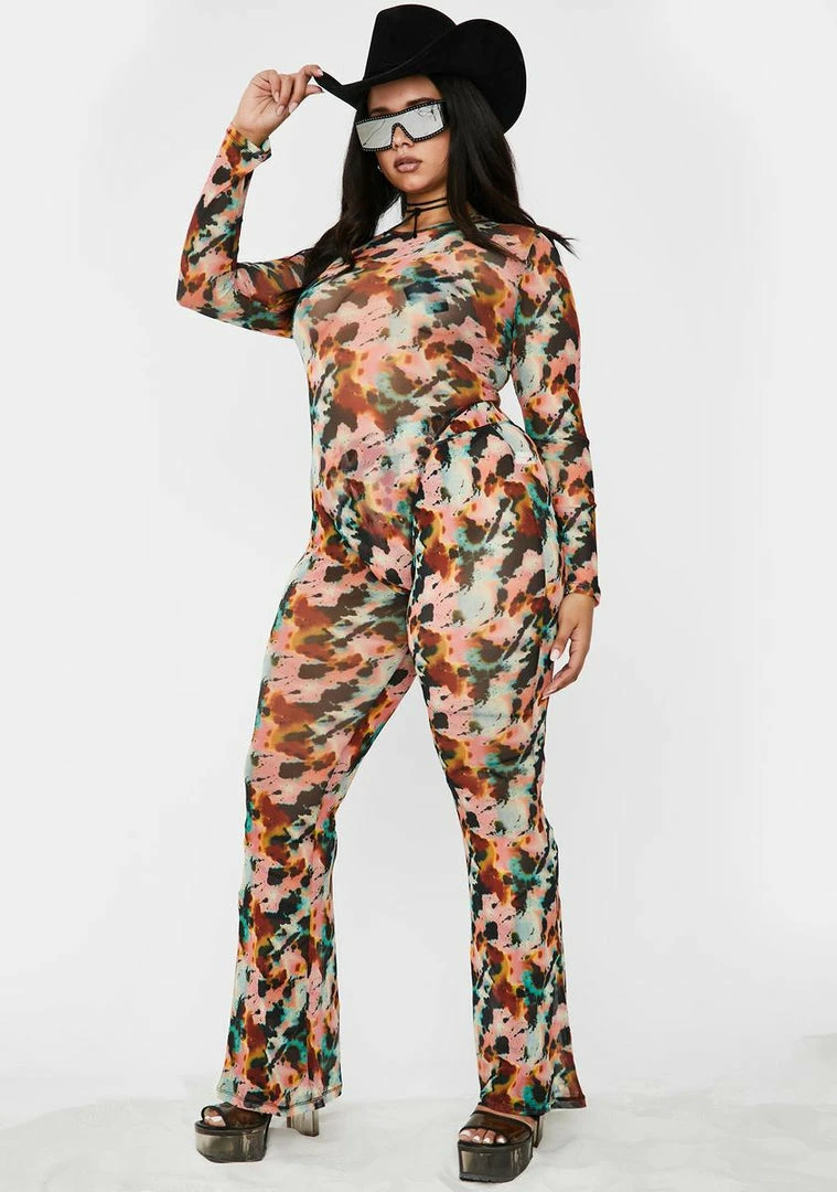where my bag at?! If it doesnât make money it doesnât make sense in this matching set that has a supa sheer material, sikk ink blot print all ova, long sleeve thong bodysuit Nâ high waist flare pants to have âem swipe those visas.