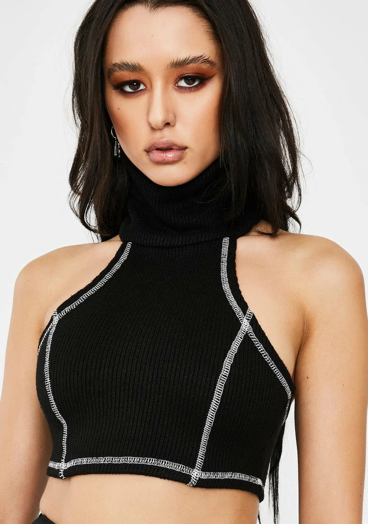 they act like they know people but you got the numbers to prove it, sis. Youâre worth the follow in this hot AF halter tank top that has a stretchy ribbed knit, contrast stitching, a thicc turtleneck and cropped fit.