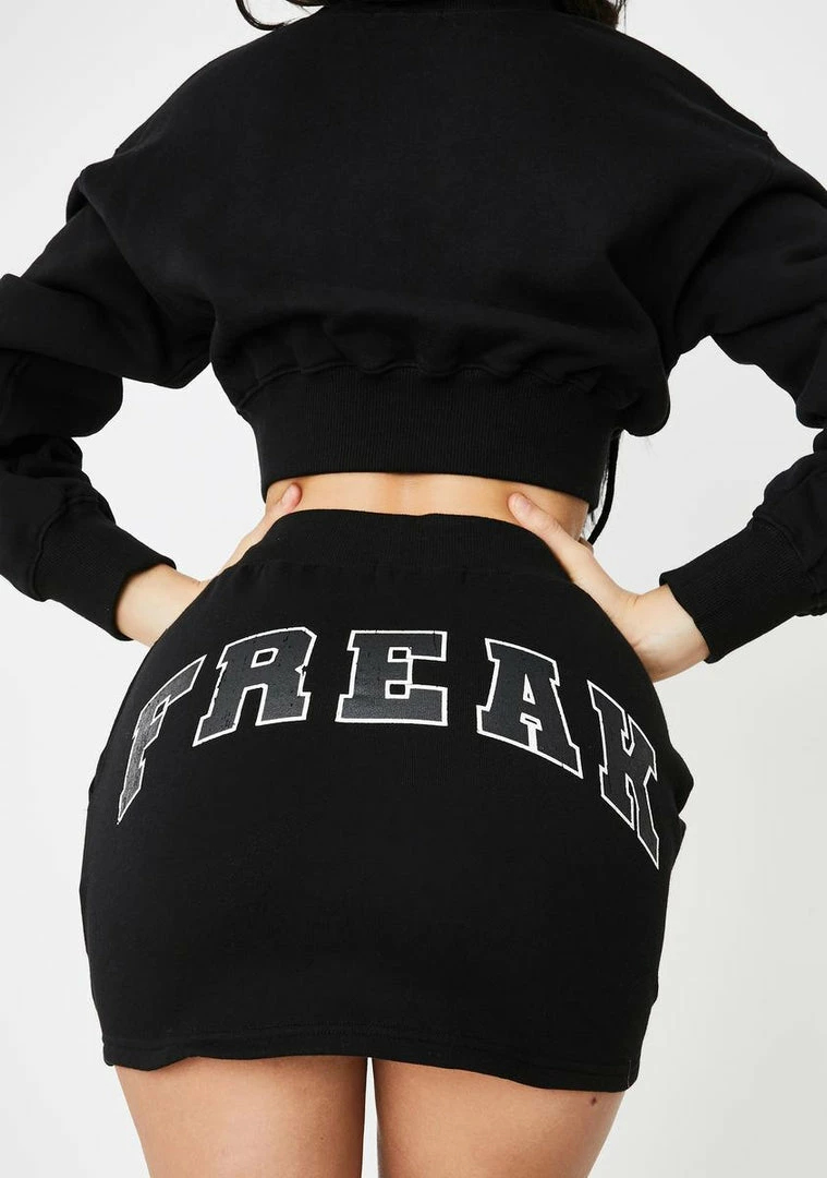 cuz you can only reveal so much without getting blocked by the IG feds, boo. Fashion isnât your only fetish in this cropped hoodie Nâ mini skirt set that has âFREAKâ written across the back, a hott lace-up design and side pockets.