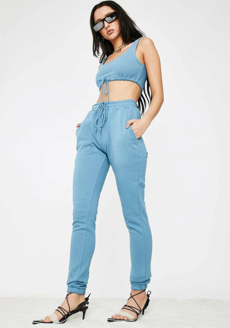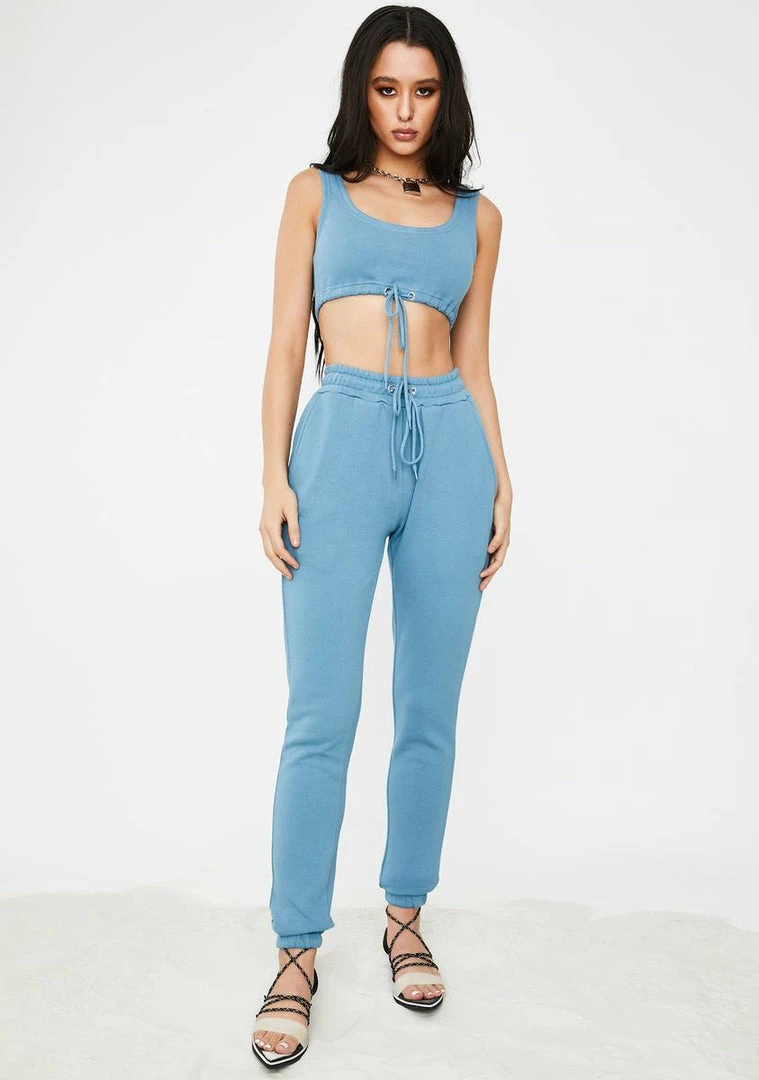gotcha on Do Not Disturb mode. Put the âgram life on pause in this hella cute tank crop top Nâ jogger sweatpants set that has a soft AF construction, adjustable drawstrings and side pockets.