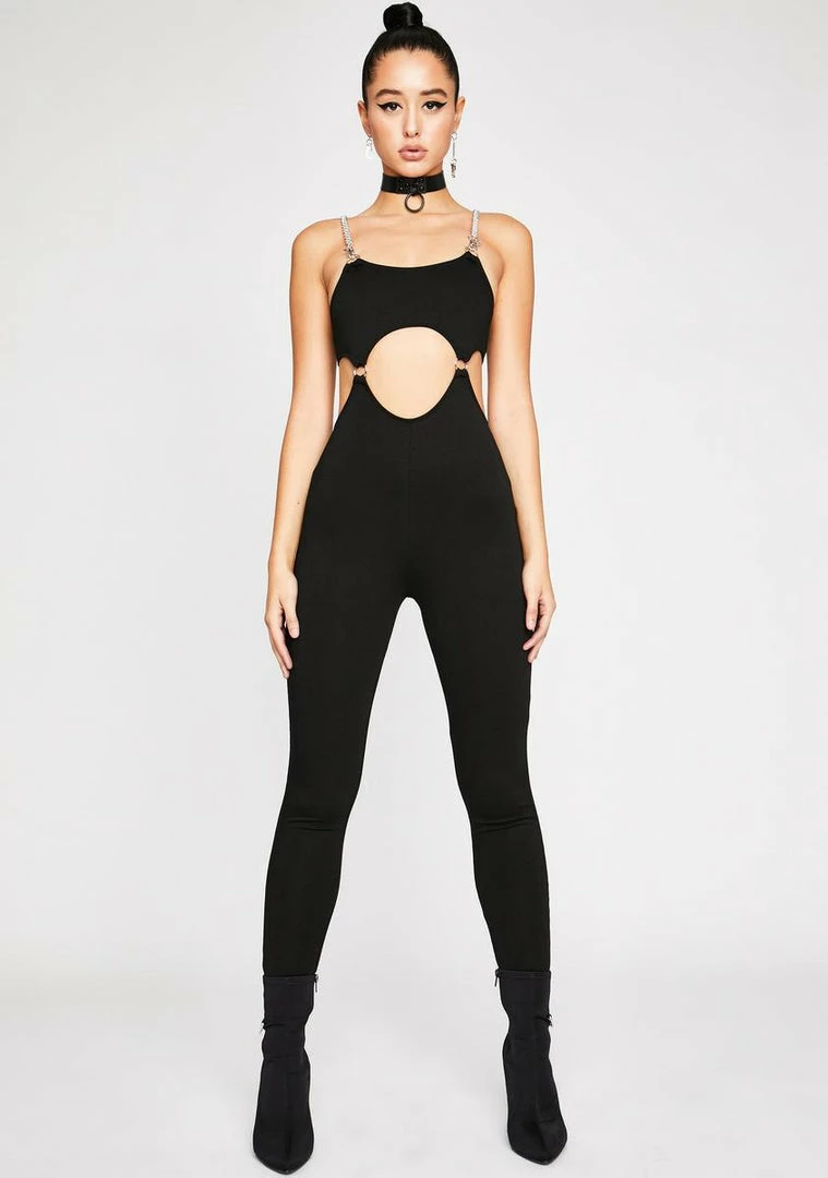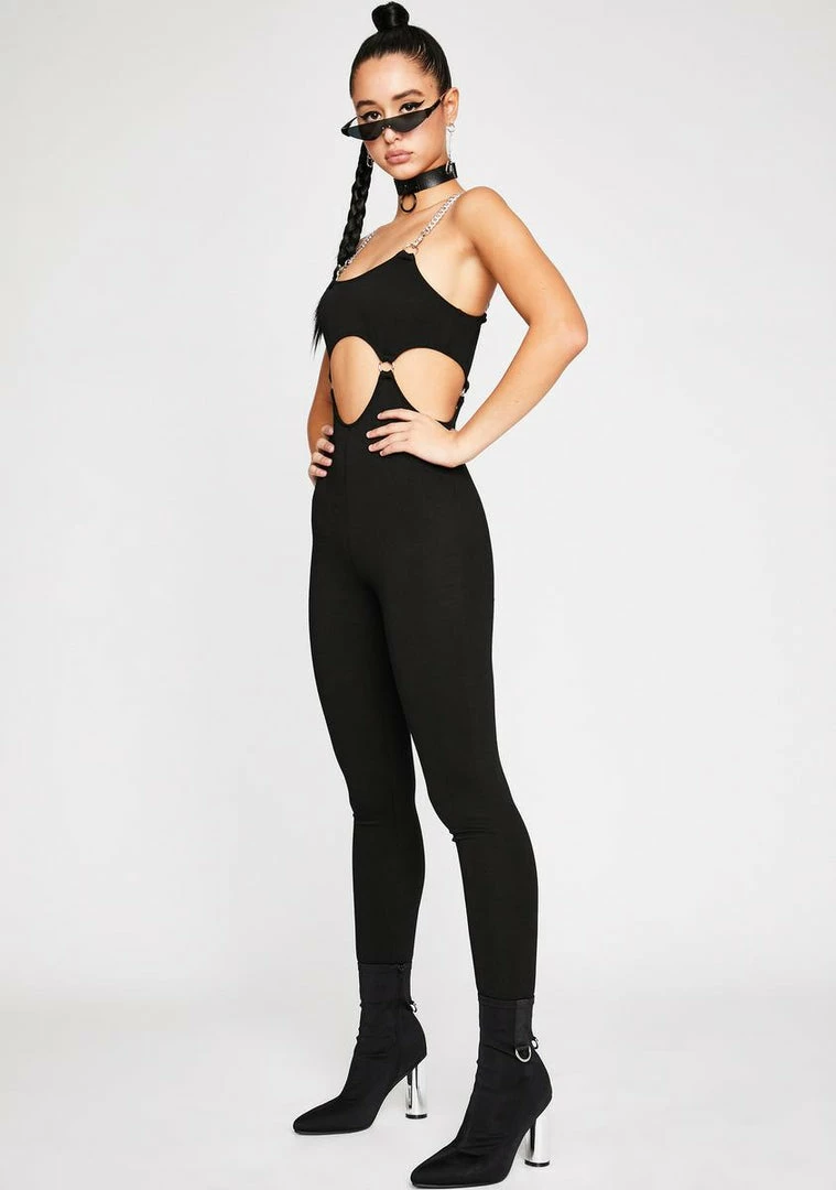 cuz you donât have a bad side! Serve face at every angle in this sexxxy cut-out catsuit that has adjustable chain straps, O-ring hardware, and a bodycon fit thatâll have ya werkinâ the camera.