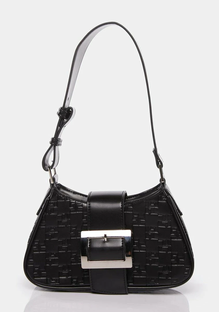 are you willing to risk it all? This shoulder bag has a vegan leather construction, branded monogram debossing, a top zip closure, a buckled strap at front, and an adjustable shoulder strap.