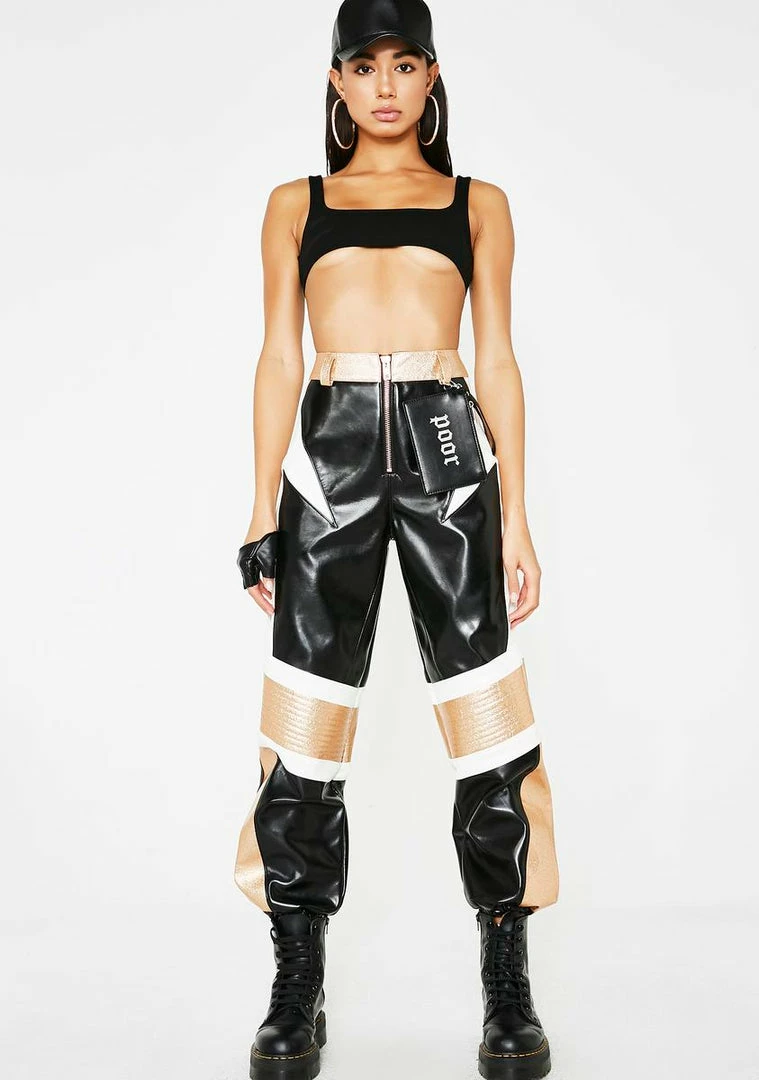 cuz every day you lit! Tell âem to step their game up with these moto high waist joggers that have a color block design, a relaxed fit, Nâ zip closure.