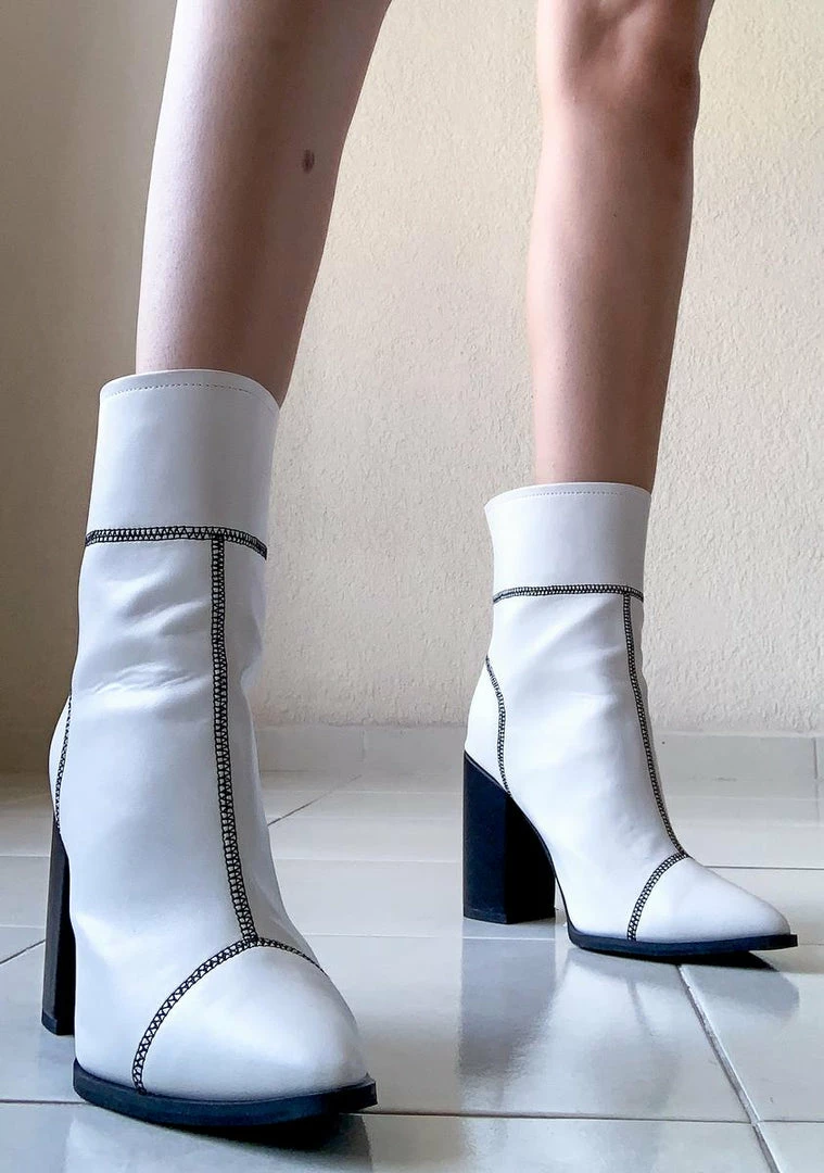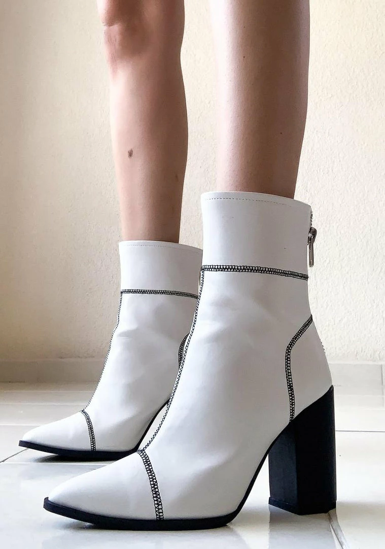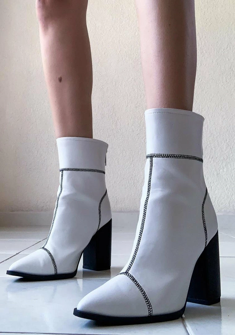 cuz ya go big or go home bb! Slay yer haters in these supa chic PU leather ankle booties with a block heel and contrast stitching all over.
