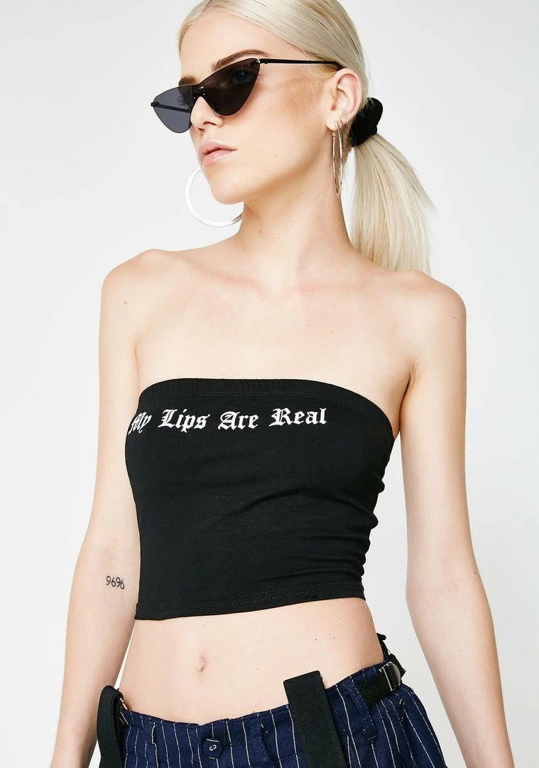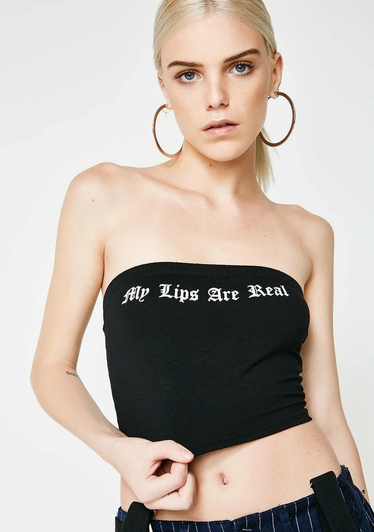 thatâz what your mama told you. Secret is safe with you with this tube top that says âMy Lips Are Realâ in Old English on the front.