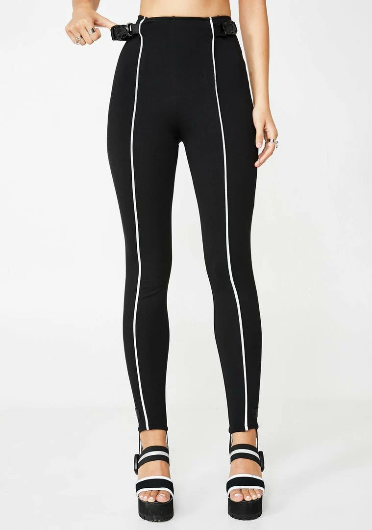 cuz youâre an icon, sis! Everyone knows ya name in these street chic leggings that have reflective piping, a bodycon fit, and buckled straps on the sides.