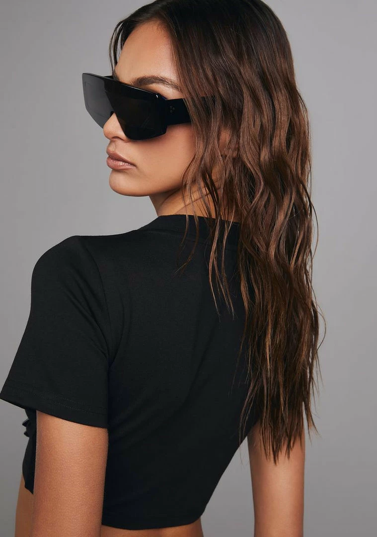 cuz you’re forever an influence, babe. This crop tee has short sleeves, an asymmetrical hemline, a zipper detail on the front, and a “paid” text graphic design.