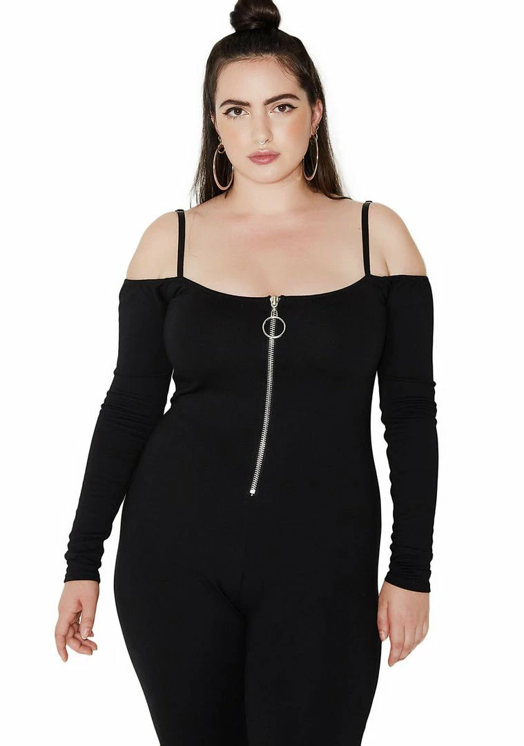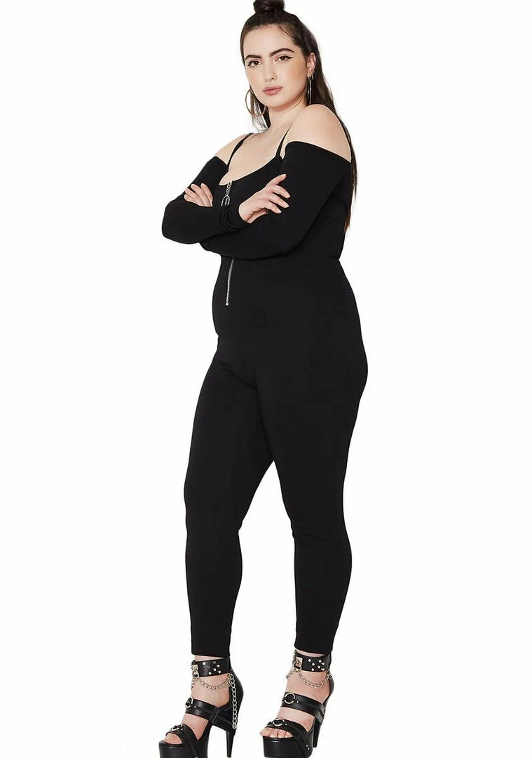 cuz the sidewalk is ur runway, babe…this sexxy af catsuit has a stretchy fit, sexxy off-shoulder design, adjustable straps and front zipper closure.