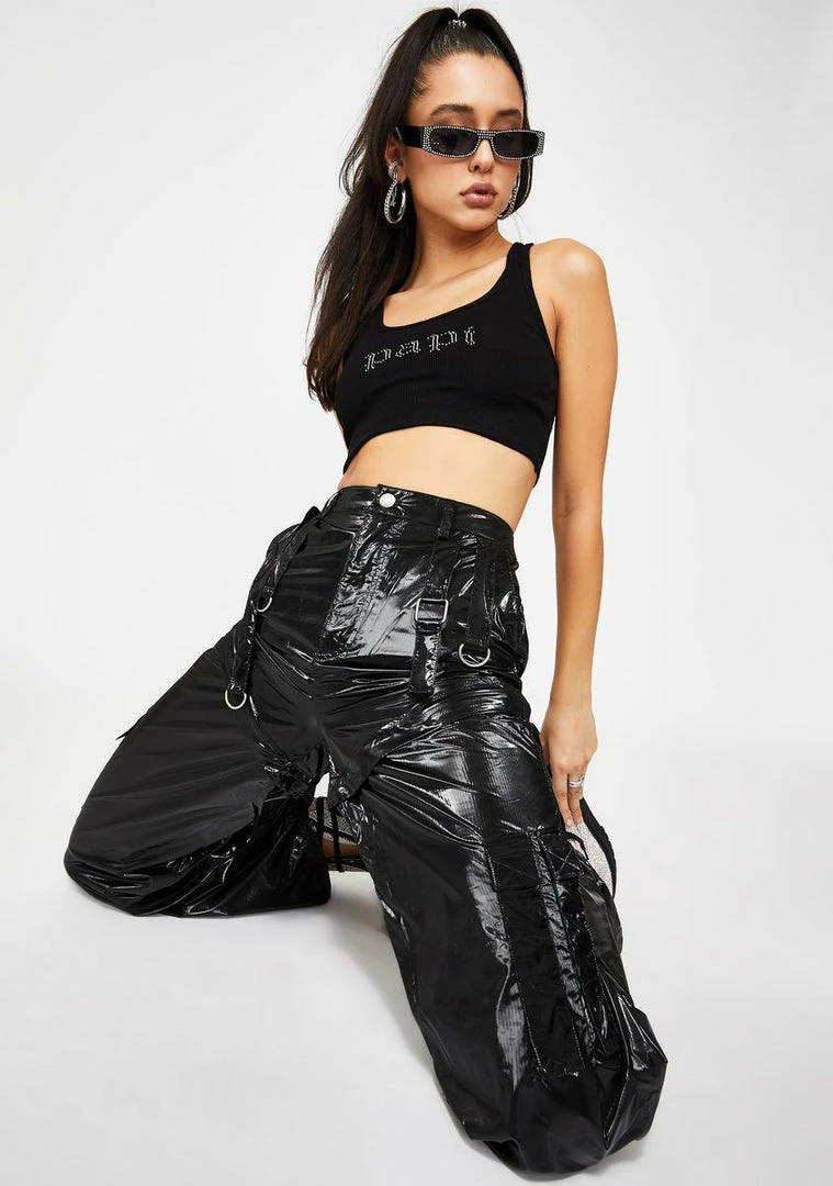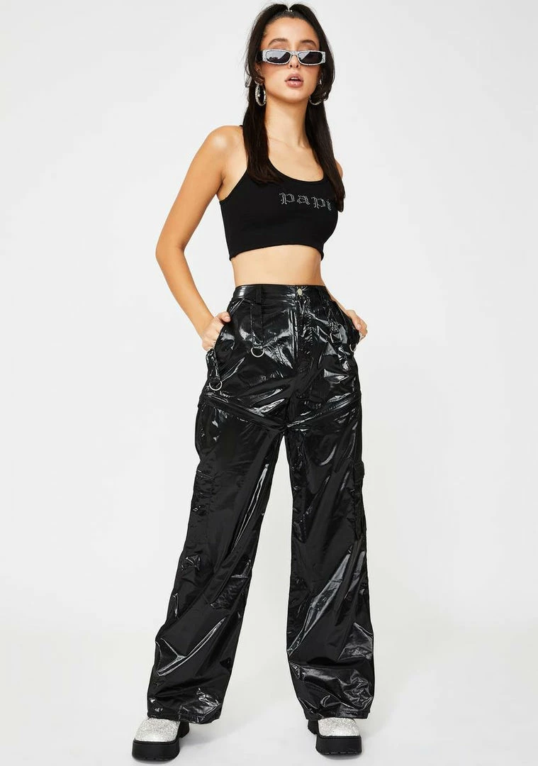 we donât do goodbyes, we just keep it pushing! Have âem hooked on yer looks in these high waist cargo bottoms that have three classic cargo pockets, sikk strap design, a wide leg fit Nâ hidden zip closure to convert into shorts.