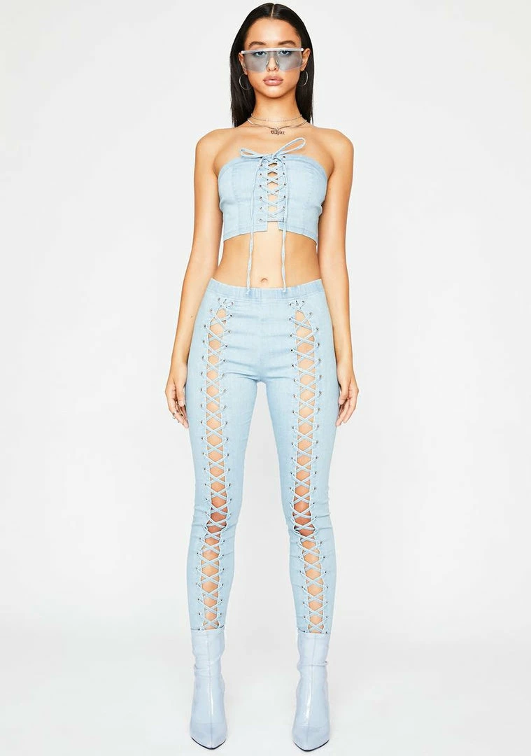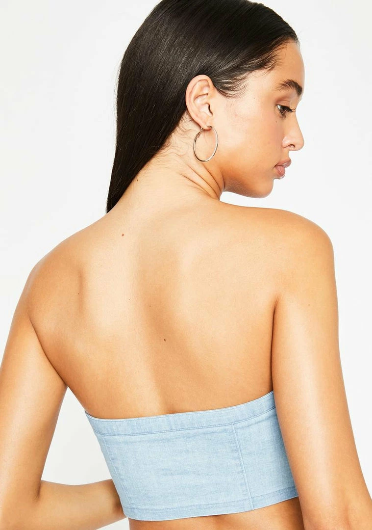 cuz ya have a deadly drip, bae. Back it up in this fierce tube top that has a sikk denim material, front lace-up closure, and a slim fit.